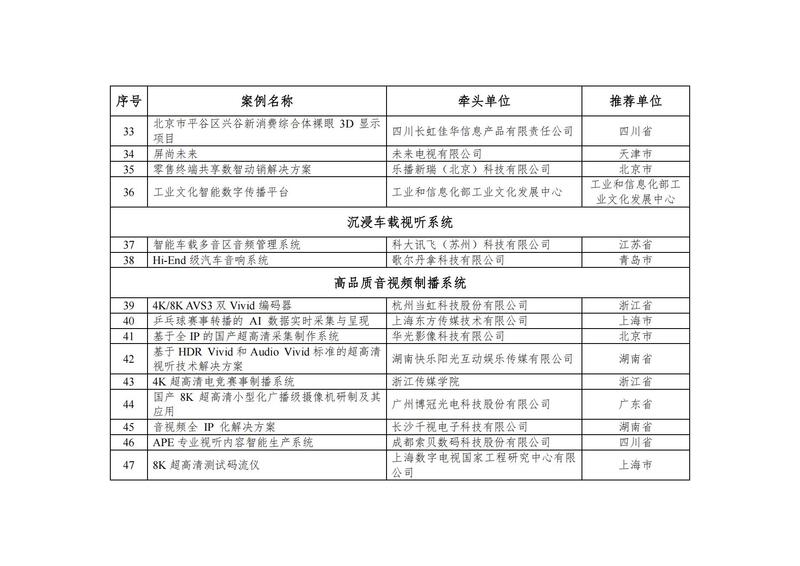 据了解,视听系统典型案例征集评选活动由工业和信息化部、国家广播电视总局及国家知识产权局联合开展,经地方推荐、专家评审,最终全国共有65个典型案例脱颖而出。