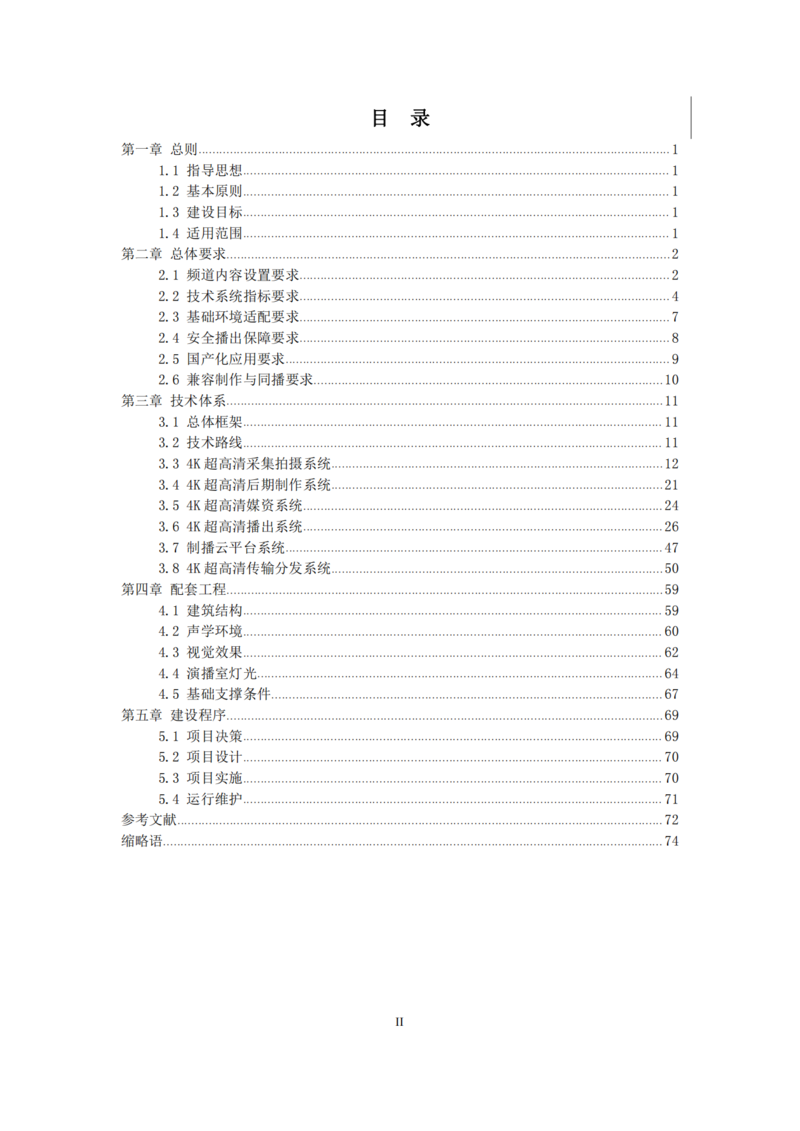 为顺应超高清发展趋势,指导4K超高清频道建设,提升4K超高清节目制播能力,促进4K超高清制播域优化升级、提质增效、创新发展,国家广播电视总局科技司于2024年设立了“4K 超高清频道建设指南”项目,由中广电广播电影电视设计研究院有限公司牵头,相关单位参加,成立指南起草小组。起草小组基于4K超高清频道建设要求,结合电视台建设实践,围绕总体要求、技术体系、配套工程、建设程序等方面提出了具体指导意见,形成了本建设指南。