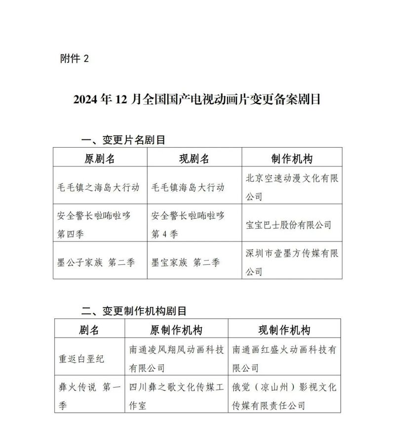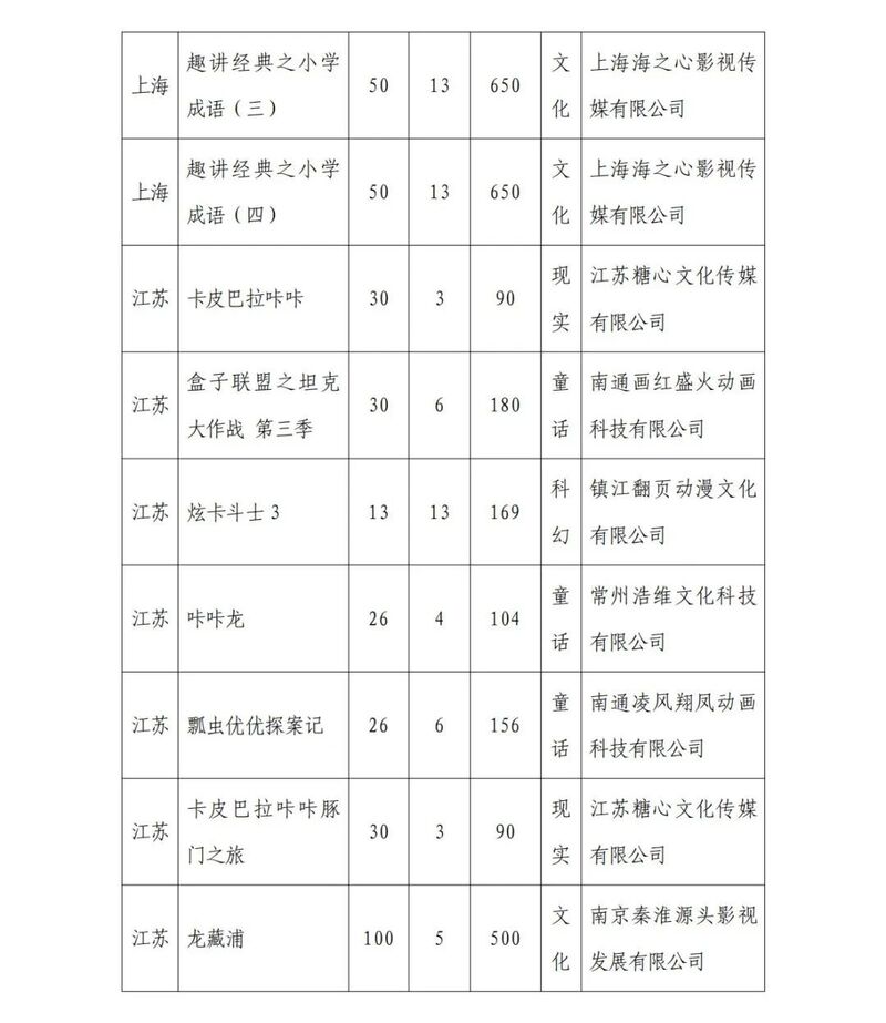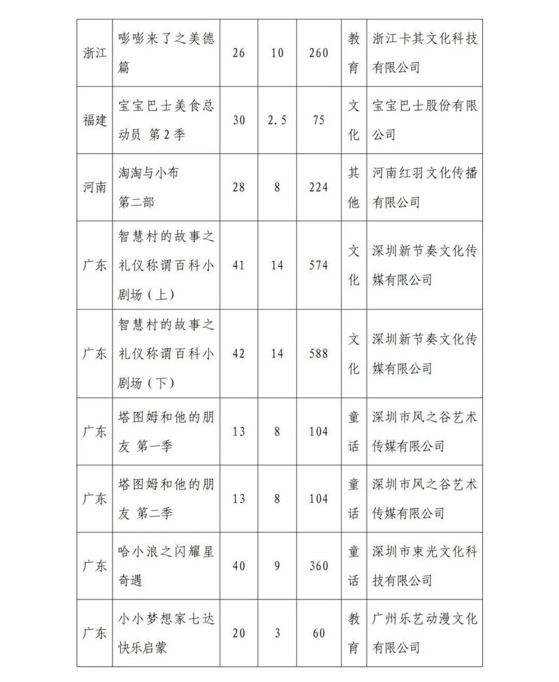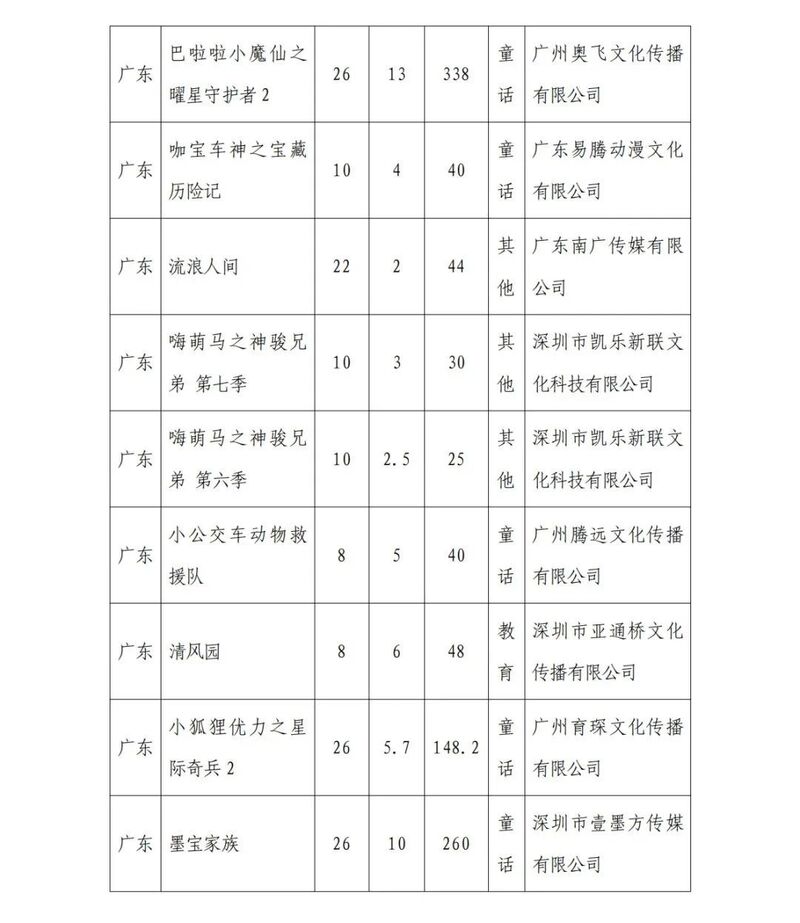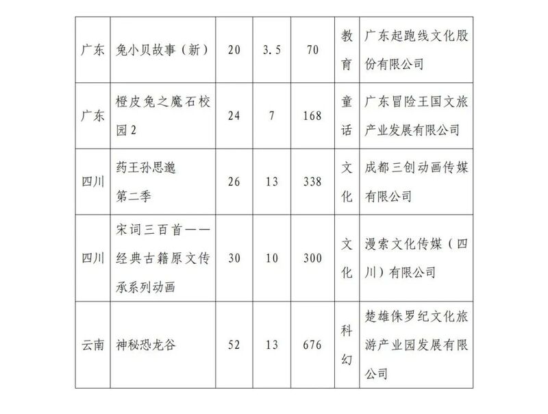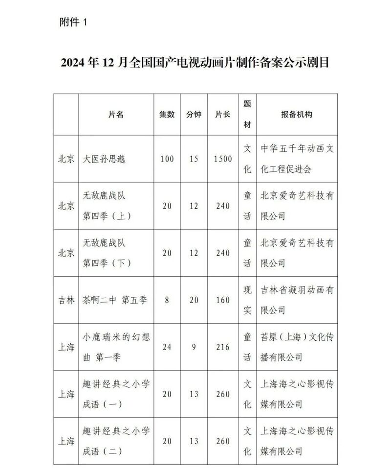 广电总局2024年12月全国国产电视动画片制作备案公示