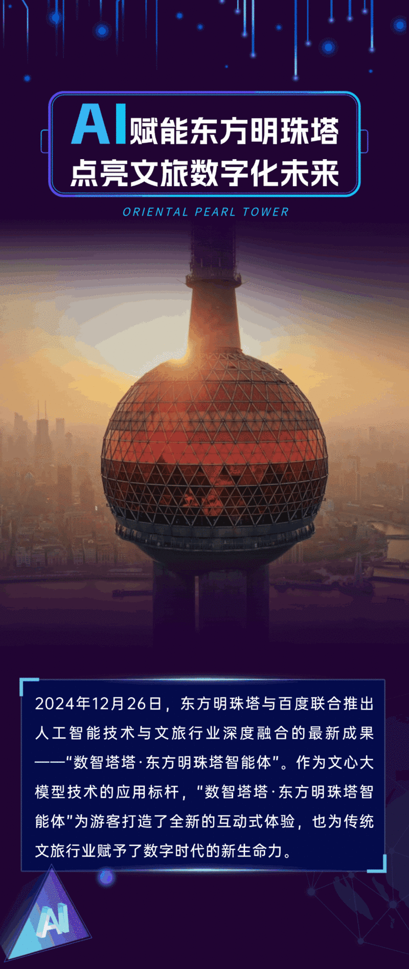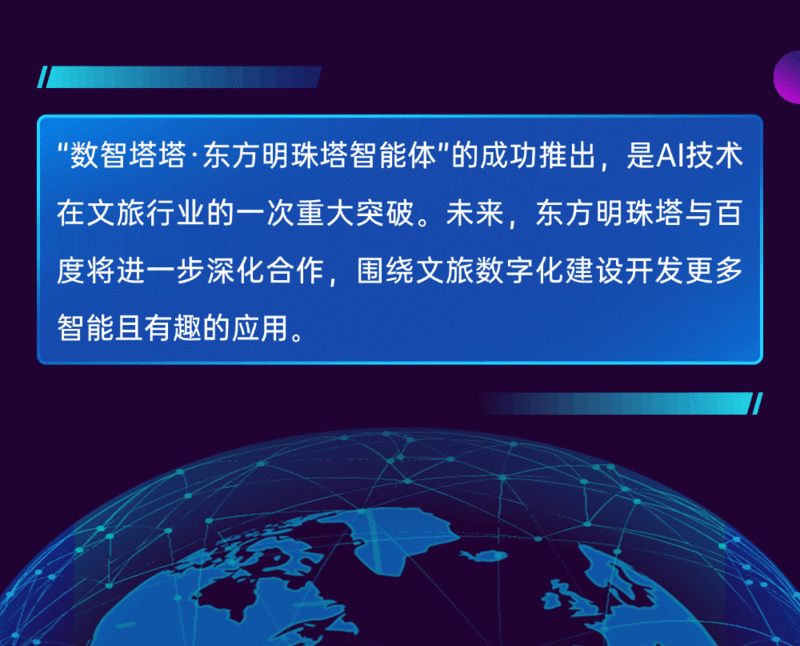 “数智塔塔·东方明珠塔智能体”依托文心大模型的自然语言处理与内容生成能力,为市民游客提供了全方位的智能导览服务。