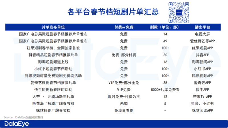 其中,红果短剧上线超一百部免费短剧,并联合番茄小说、番茄畅听推出春节档活动;抖音主推30部精品短剧,免费付费双结合。