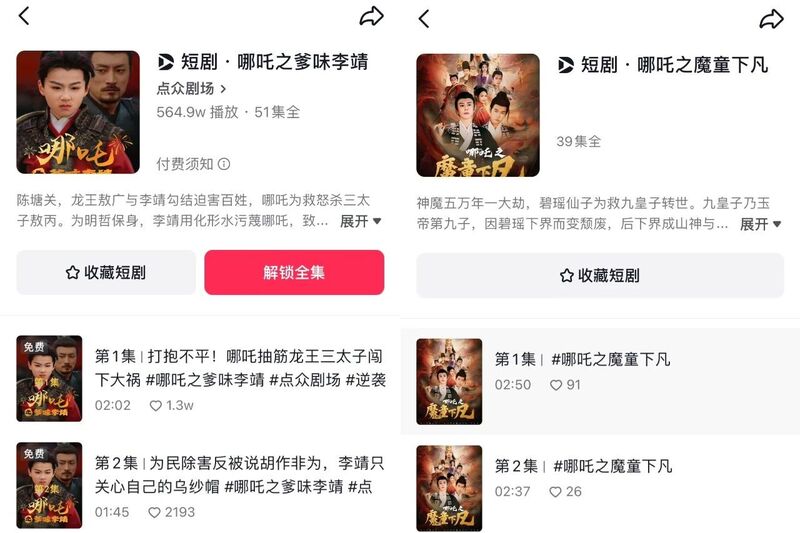 春节档,电影市场被《哪吒2》点燃,凭借精彩的剧情、震撼的特效和高度共鸣的价值观,一路登顶中国影视票房冠军宝座。影片热度未减,短剧行业从业者们凭借着敏锐的商业嗅觉,借着影片上映的热度,在春节档推出了如《哪吒之爹味李靖》《哪吒之魔童下凡》等短剧。