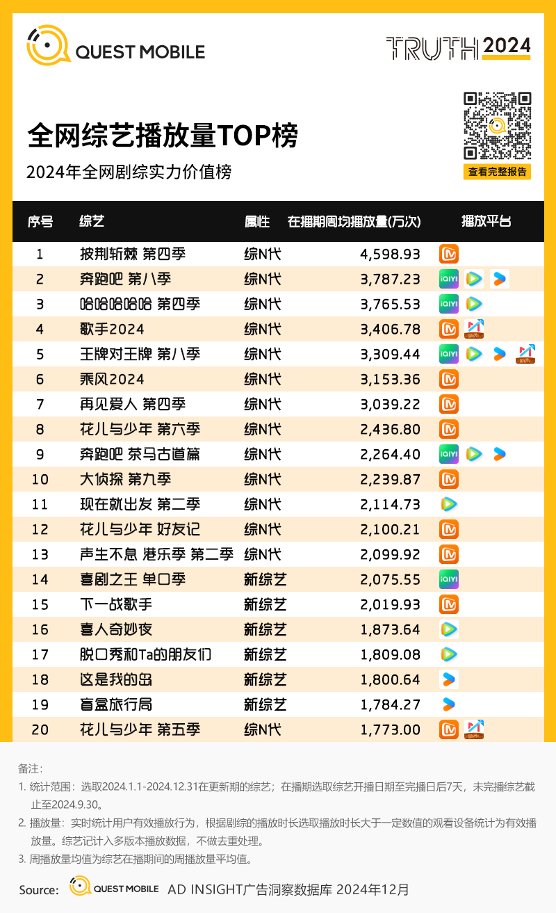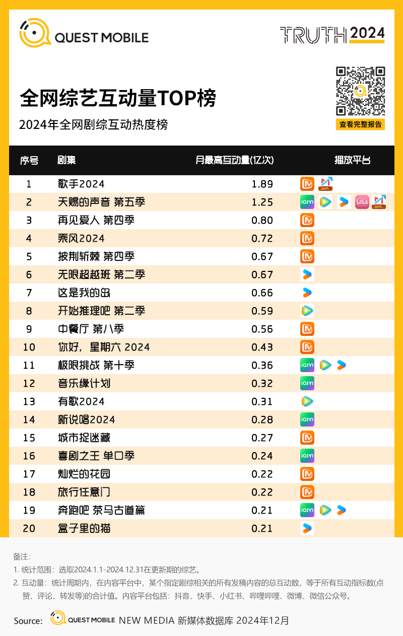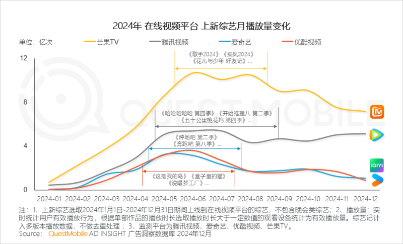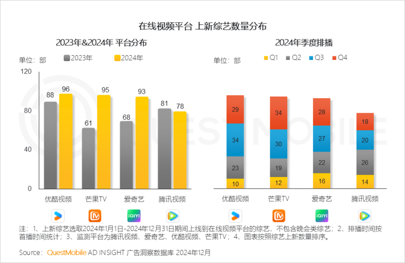 1.1 2024年在线视频平台综艺爆发集中在Q2、Q3
