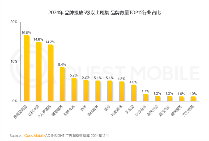 Ⅲ. 保健品药品、饮料冲调、个人护理品行业高频投放剧集广告,占据市场近一半投放量