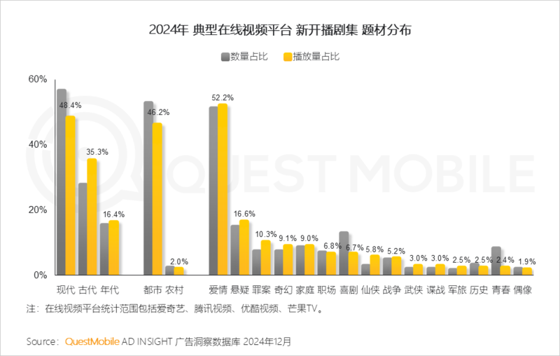 古代/仙侠题材内容依旧吸晴,喜剧、青春等题材市场表现欠佳。