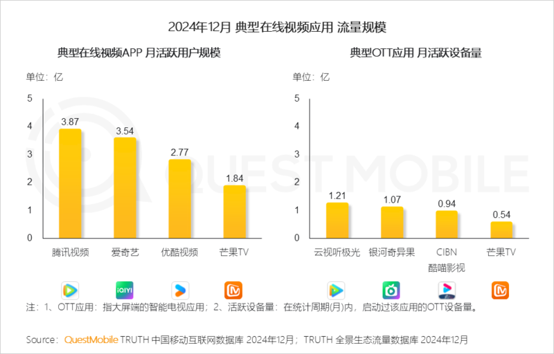 OTT大屏终端保持一定占有量,并与移动端流量实现互补,拓宽了内容消费场景,也将继续成为在线视频行业的重要增长点和创新驱动力。