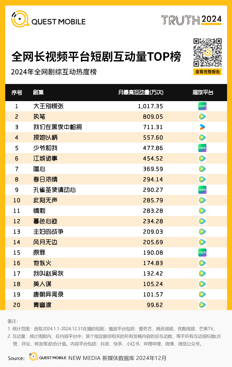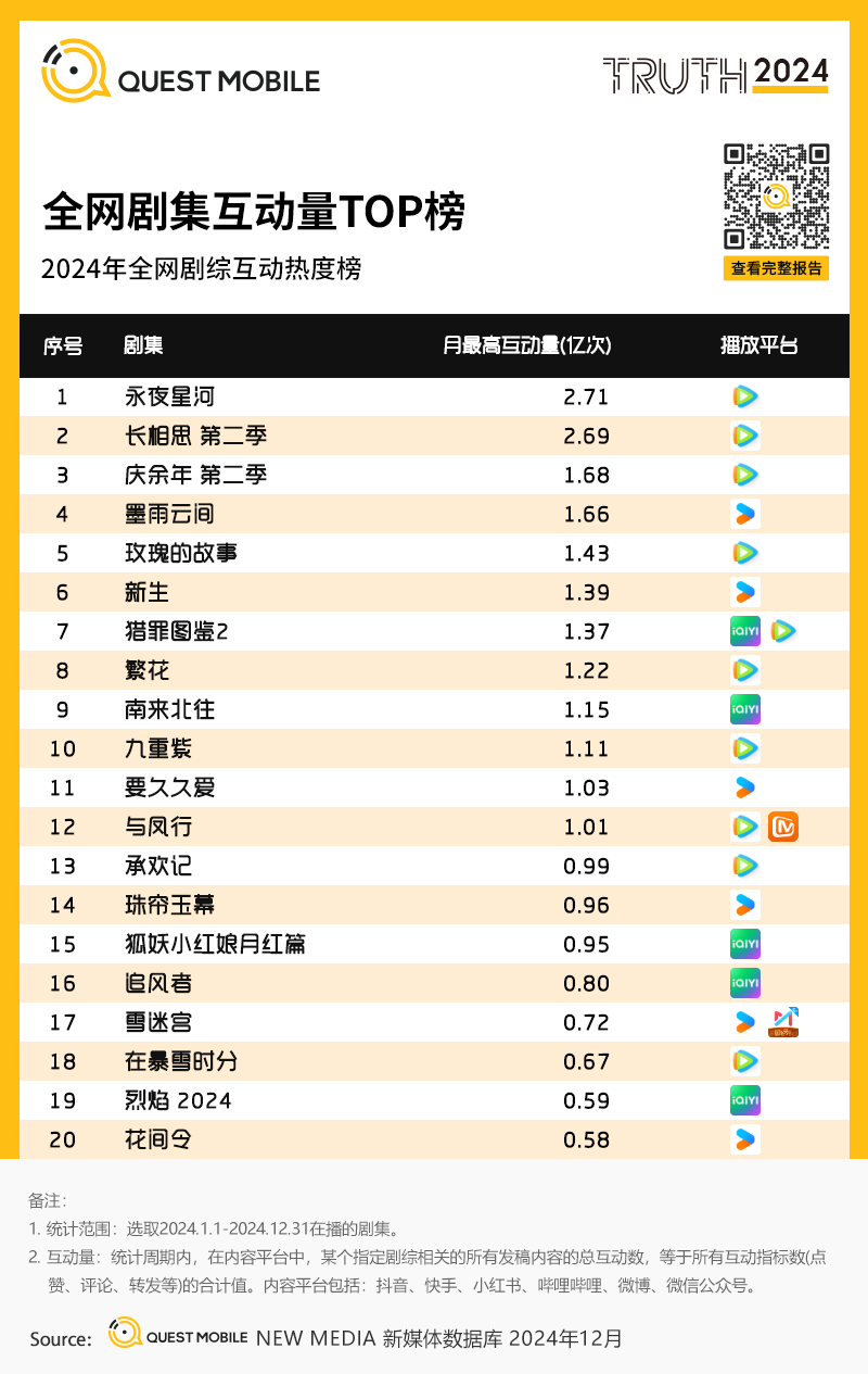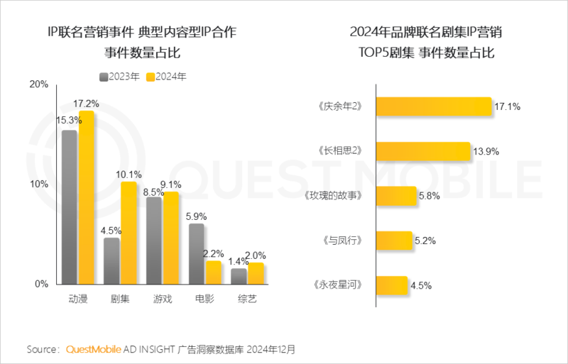 2024年,在热剧的带动下,剧集IP占据一定市场地位,剧集IP展现一定的商业潜力和粉丝影响力。