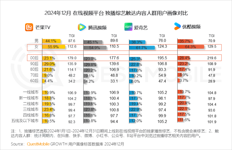 3.4 在线视频平台独播综艺争抢年轻女性用户