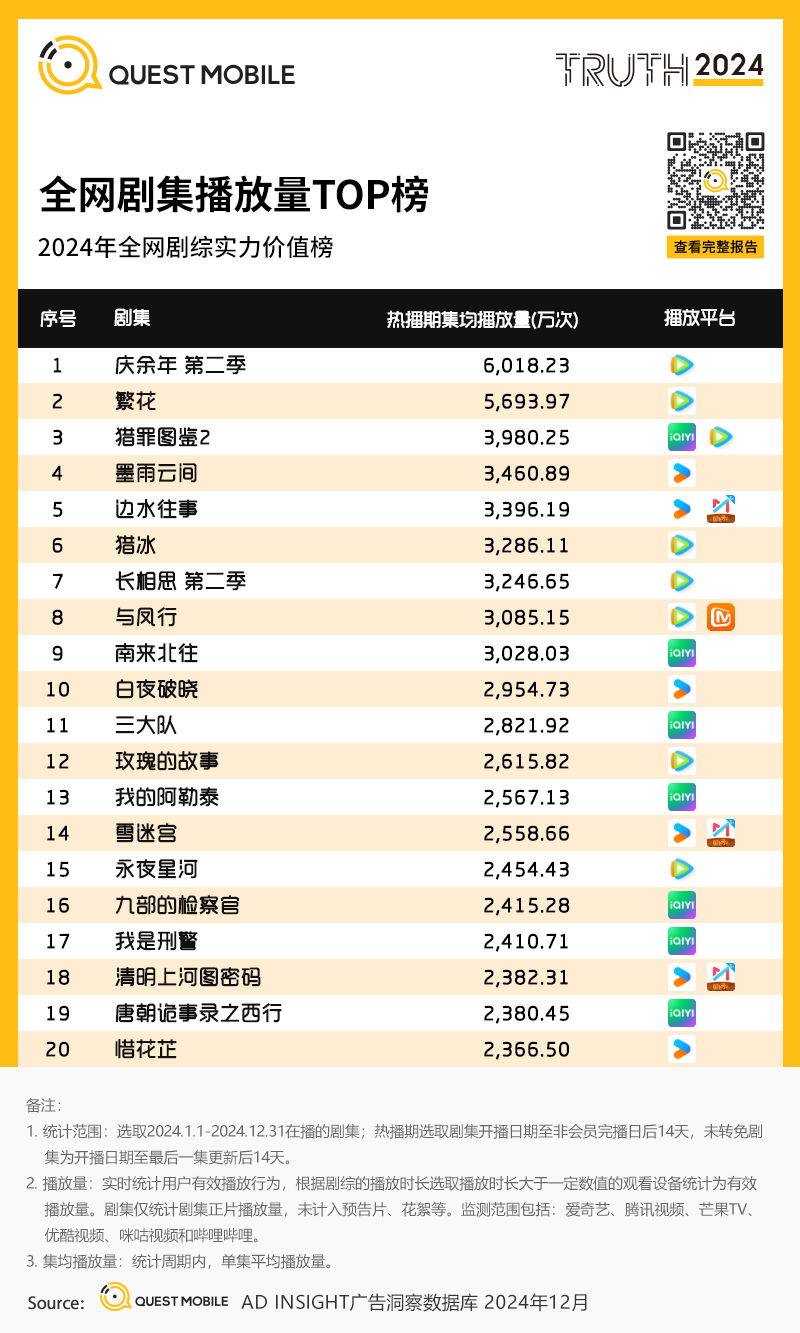 2024年,上新剧集部均下降2集,用户对紧凑剧情和高效叙事的偏好正在发生。