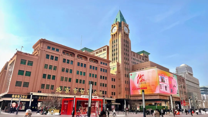 配合春节等传统节日在王府井步行街举行的舞龙舞狮及点睛仪式,电子大屏同步呈现点睛创意视频,实现线上线下深度互动,让大家感受到浓浓的中国年味。2024年其所在的百货大楼北厦东门客流提升74%(可比口径),王府井大街实现客流1.28亿人次(同比提升近30%)。