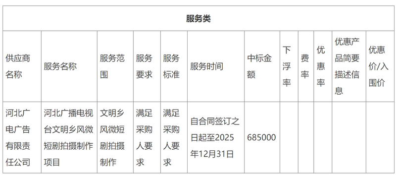 河北广播电视台文明乡风微短剧拍摄制作项目竞争性磋商中标公告