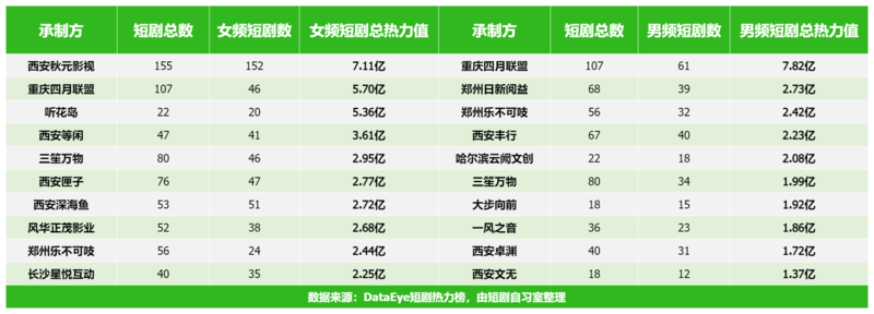 部分公司重心转向女频 部分公司男女频双开花 女频短剧热度领先男频短剧承制哪家强
