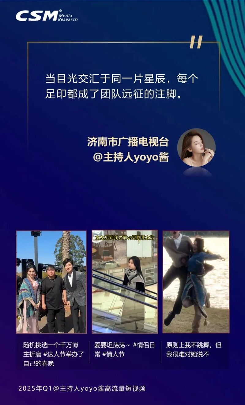 在流量竞技场,坚持持续稳定的高质量输出,以“质+量”应对算法,当规模效应逐步形成,商业询单机会也随之增加,当然,同时接受考验的还有背后团队的执行力与资源整合能力。保留媒体的专业理念,保持镜头常开的创作状态,是很多头部融媒主播的工作常态,如@主持人阿喆,从早上8点钟到晚上12点钟带妆待命,时刻保持拍摄状态。将爆款逻辑践行为“马拉松”哲学,把流量视为“时间的轮转”,在这场漫长的博弈中坚守确定性。