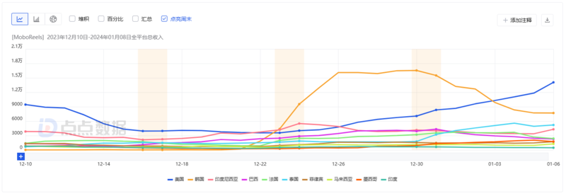 去年12 月 MoboReels 韩国市场营收近 13 万美元,仅次于美国(20 万美元),足以管窥韩国用户的付费潜力,而韩国短剧的上线或许也有望继续推高韩国市场短剧营收的天花板。