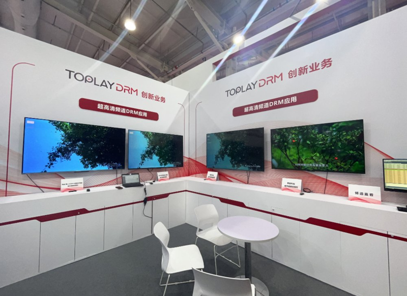 本次ChinaDRM技术品牌商标TOPLAYDRM亮相ChinaDRM成果展展台,该标识经国家知识产权局核准注册,代表了ChinaDRM对版权保护最朴素的理解,为营造高安全级别的版权保护环境而生,为服务好广大消费者提供高价值视听内容而生,未来视听“畅享由我”。依托TOPLAYDRM技术品牌,将有效整合内容方、技术方、平台方资源,建立从技术研发到商业落地的全链路协同机制。