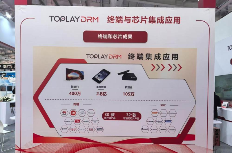 目前,支持ChinaDRM的智能终端设备总量突破2.8亿台,涵盖智能电视、机顶盒、车载娱乐系统等30款终端及32款芯片,技术生态已进入规模化应用阶段。