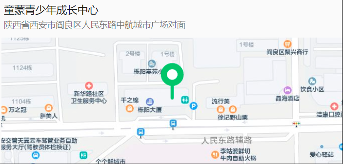 - 地点:陕西省西安市阎良区童蒙青少年成长中心(陕西省西安市阎良区人民东路中航城市广场对面);