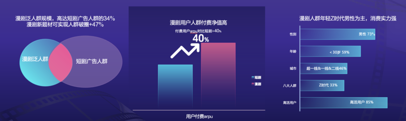 目前,部分市场存量漫剧的用户与短剧用户重叠,但同时兼顾了Z时代用户。这意味着,漫剧可以通过不同剧目类型,挖掘新人群、打开新的流量池。
