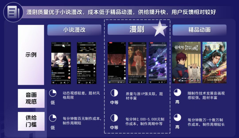 而这种趋势或将加速产业格局洗牌:短视频平台在动漫产业有了一席之地,部分AI技术方往漫剧制作方转变,版权方通过端原生发行渠道掌握更多主动权。