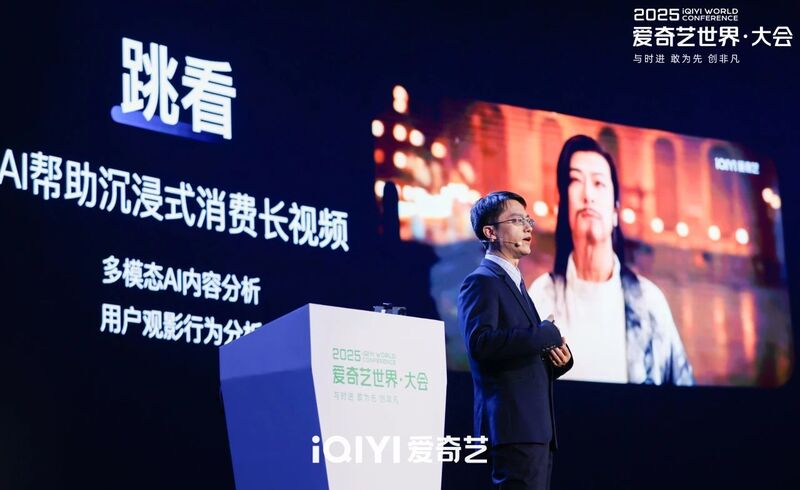 活动现场,刘文峰介绍并演示了爱奇艺推出的新功能:让用户不错过精彩剧情点的“跳看”、个人智能助手“桃豆”,分享了爱奇艺“剧本工坊”、“影像工坊”、虚拟制作等内容创作领域的创新实践。在创意、制作和播出各阶段,爱奇艺用好AI,赋能更多“超级个体”,力求创造真正非凡的作品与体验。
