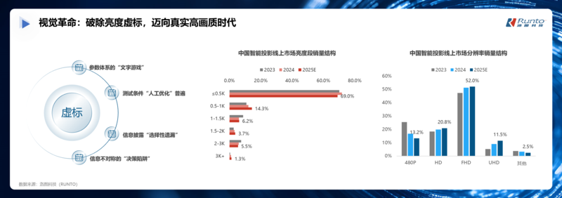 洛图科技(RUNTO)认为,行业突围的核心关键在于三个方面:一是价值回归,以用户为中心,不只是比参数、价格,而是比使用过程中的“真实体验”;二是拥抱技术,积极整合AI、IoT、内容平台,从硬件走向系统级竞争;三是构建生态,推动内容合作、品牌联动、平台联合,实现“投影+X”场景落地。
