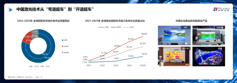 在产品设计上,8K、可折叠、球幕等创新形态的激光投影也率先由中国企业推出。