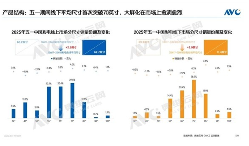五一彩电销量破100万台:线下平均尺寸首次突破70英寸