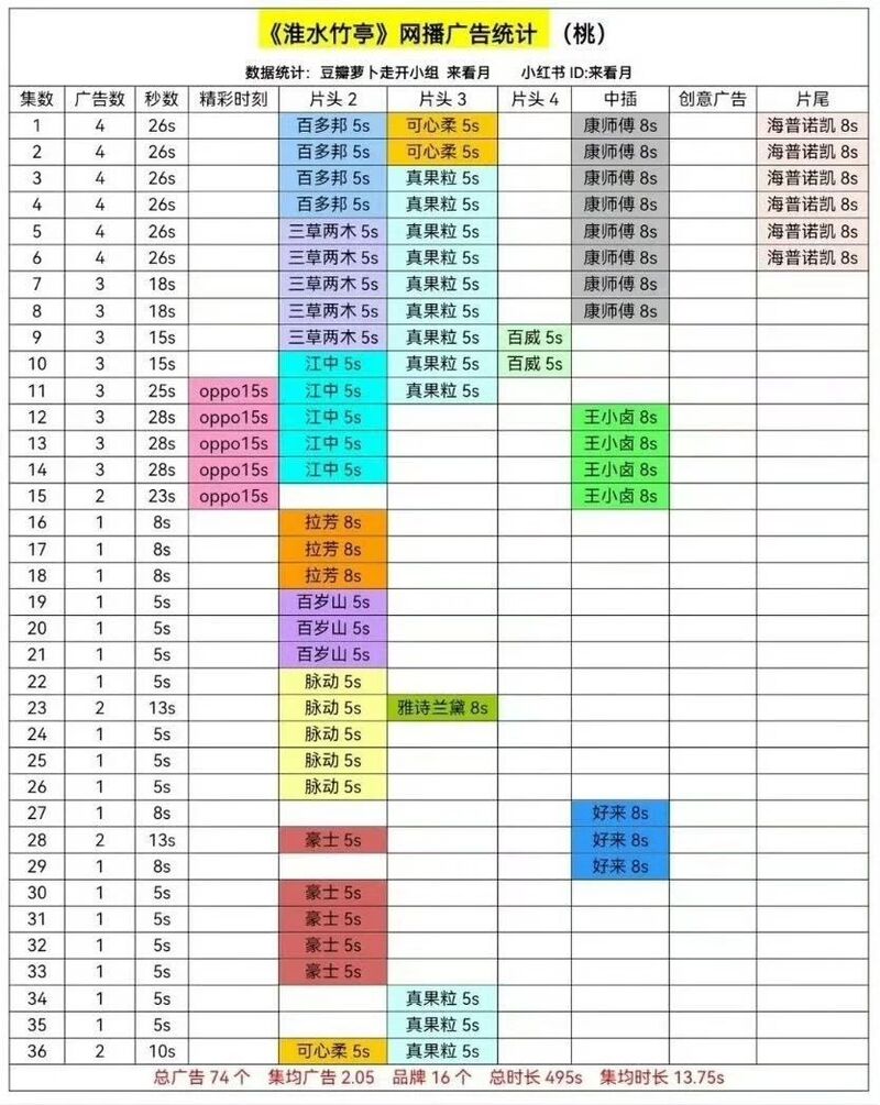 亮眼的播出表现加上良好的口碑转化,也让该剧的商业价值水涨船高,全剧共植入74个广告,获得16家品牌冠名赞助,总时长达到495s+。