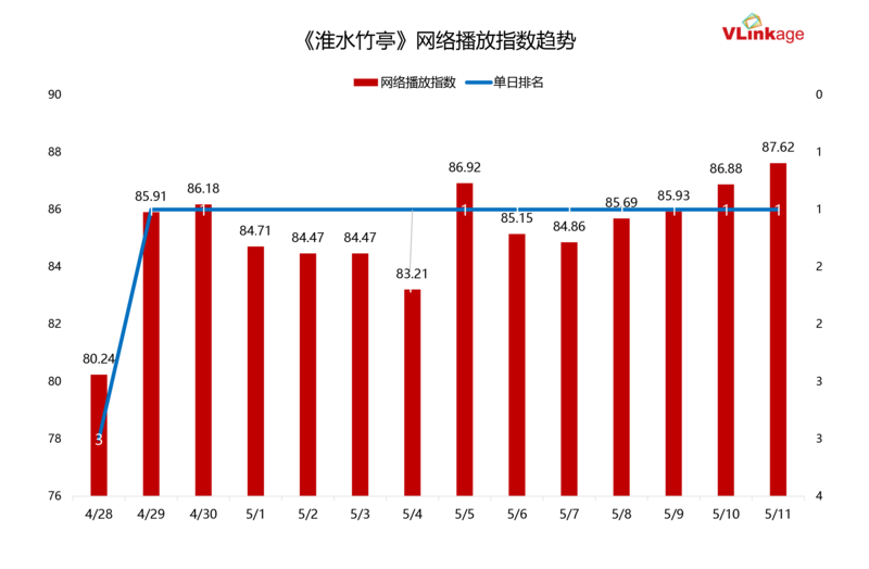 网播指数连续十三日排名vlinkage剧集榜榜首。