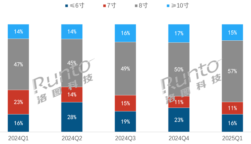 而在屏幕音箱这个细分市场,8寸是最主要的尺寸。2025年第一季度,其销量份额为57.0%,同比去年同期增长了9.5个百分点。与此同时,7寸屏的市场份额不断萎缩,有被厂商放弃的趋势。