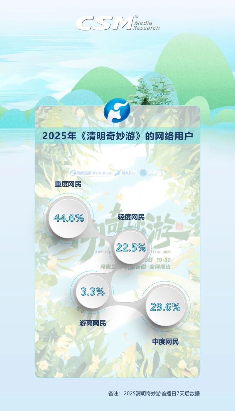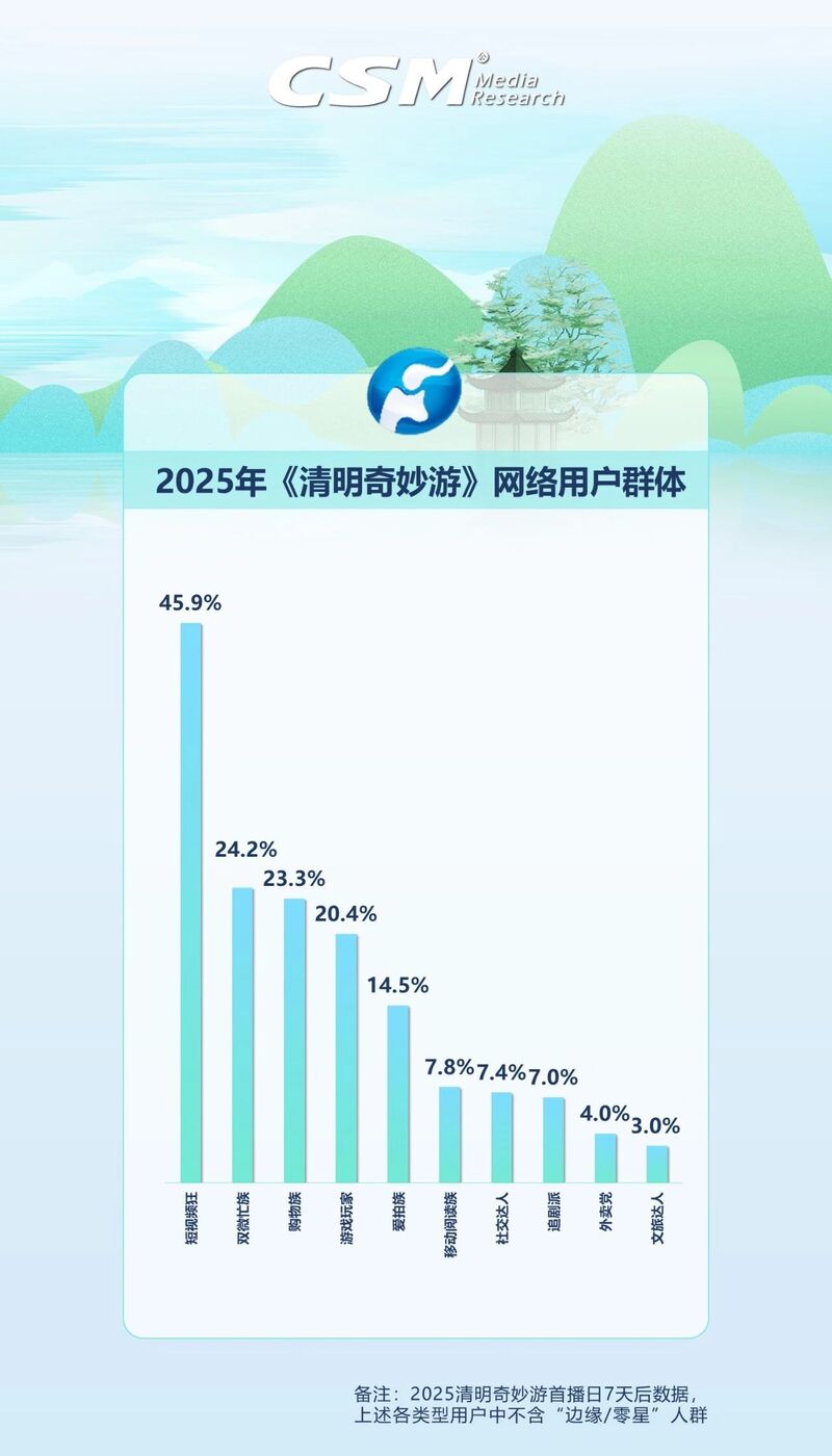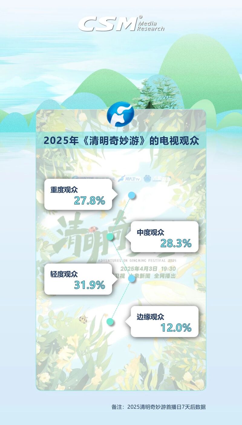 进一步分析用户数据,从大屏收视数据来看,《清明奇妙游》以创新表达推动传统文化“破圈”驻留,中度观众占比28.3%,重度观众占比27.8%,显示出观众对节目的高黏性和浓厚兴趣。