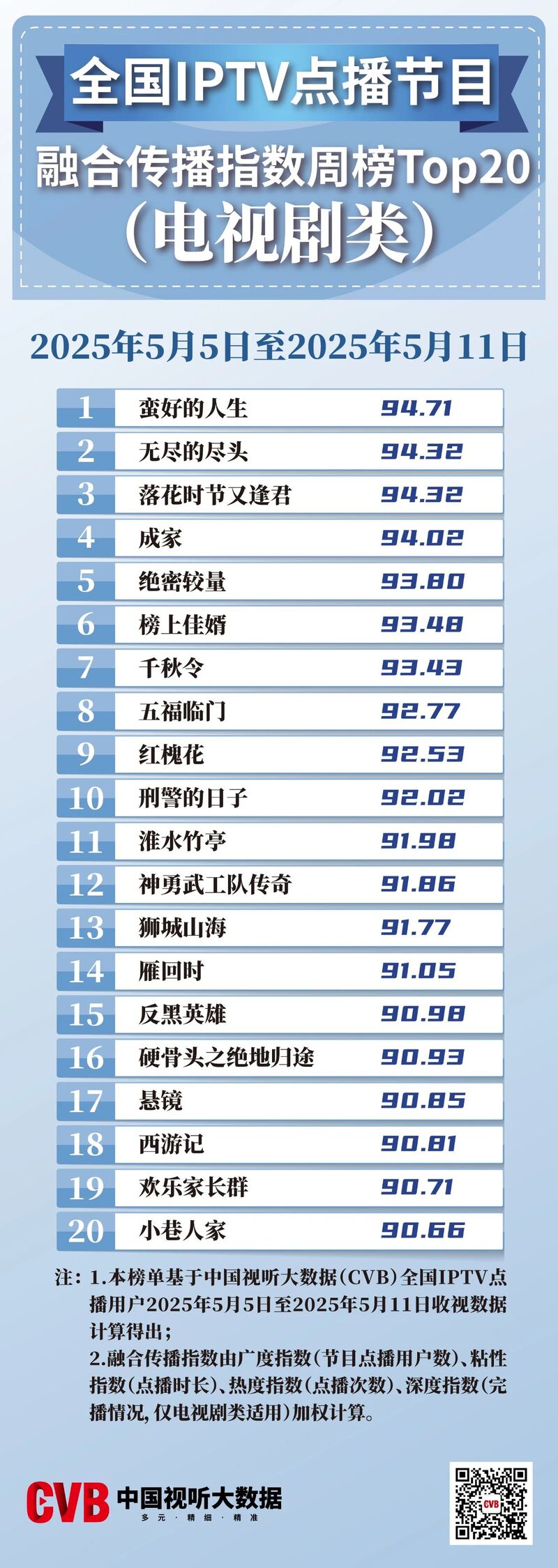 全国IPTV点播节目融合传播指数周榜Top20(电视剧类)【5月5日-5月11日】