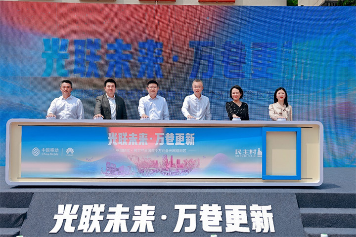 4月30日,中国移动重庆分公司(以下简称"重庆移动")在重庆市九龙坡区民主村举办全国首个万兆全光网络街区授牌仪式,重庆市九龙坡区副区长刘峥、重庆移动副总经理艾忠民以及华为中国运营商网络Marketing与解决方案销售部部长王崇出席活动并致辞。市民游客可在民主村体验万兆全光带来的数字化场景。重庆移动万兆全光网络街区的打造,为重庆这座网红城市又添加了一道靓丽的风景线,为全球运营商万兆建网树立了标杆。