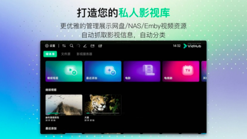 VidHub是一款支持多平台的全能媒体播放器,不仅可以访问和管理SMB/Webdav上的视频文件、还可以直接登录并播放百度网盘、阿里云盘和 115 网盘上的视频文件,更可以直连Emby/Jellyfin/Plex等媒体库,提供美观高效的视频管理与高品质观影体验。