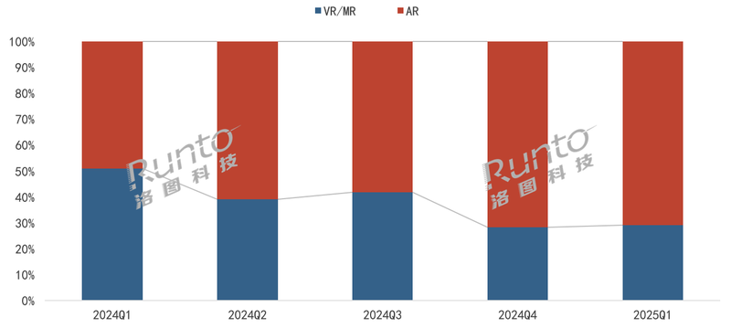 2024-2025Q1 中国消费级XR设备线上市场分产品类型销量结构