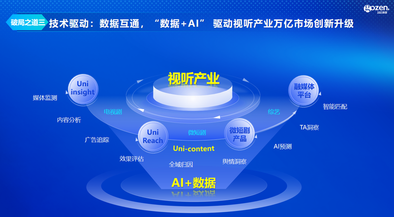 简单举个例子,比如把移动的咪咕IPTV、爱奇艺的OTT、湖南卫视、抖音和微博这些媒体放在一起,计算它们的综合效果。我们可以清楚地看到电视台的价值,以及我们能够从一亿元的投放中分到多少钱。这就是我们这套系统的价值所在。从某种程度上说,我们的数据能够决定某个媒体的预算分配,并且最终可以检验媒体在投放后的价值是否真正实现。这是我们发展过程中推出的一套新的计算体系,它正在帮助我们的行业和产业获得更多的资金支持。