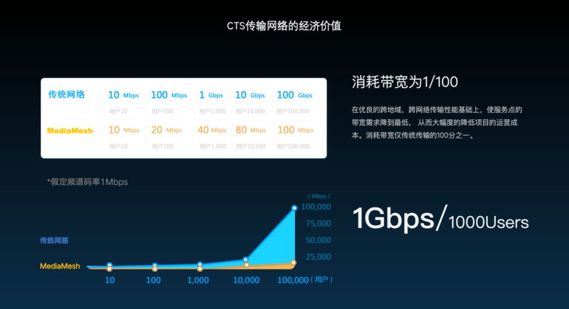 从数据上来看,单用户带宽消耗仅为传统方案1/100,百万用户级项目年节省千万级别成本(按1Mbps码率计算)。