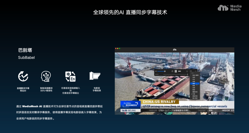 据统计,字幕延时超过1.2秒,用户体验度下降45%,延时超过2秒,用户体验下降82%。由于音视频流和字幕功能不匹配造成的用户体流失,成为翻译质量之外的第二大流失因素。而使用MediaMesh AI直播技术,则将会全面解决刚才提到的问题。