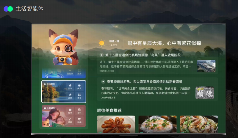 第三个是场景化的专业智能体。我们不仅仅局限于影音领域,还拓展到了娱乐、生活、教育、健康等多个方面。我们发现,在大屏面前,尤其是在小屏流量占据主导的当下,很多用户并没有强烈的影视观看需求。如果我们强行用影音需求来吸引用户,让他们打开电视,这并不现实。之前,我们与内部和外部的客户沟通时,就遇到过这样的情况。有位年纪较大的客户说,虽然我们的影音检索已经非常准确,但他并没有观看影视的诉求,家里的电视摆在那里,他根本不想打开。这让我们思考,我们是否具备其他能力,或者能否为大屏赋予新的玩法和定义,让用户有一个打开电视的理由。就像我们每天使用抖音、使用手机一样,是因为手机里有我们必需的功能。同样,我们也需要帮助大屏找到这样一个点,给用户一个打开电视的理由。