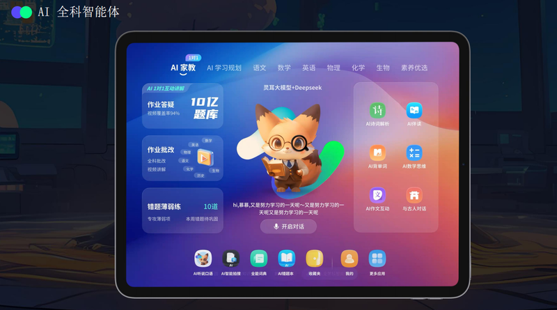 此外,我们的全学科智能体不仅具备专业特色,还能全面整合所有学科内容,支持全学科的语音自然交互,并形成专注记忆。我们将 AI 深度融入教学场景,从内容讲解到自由问答,AI能够将全学科内容有机结合,形成一个完整的产品体系。这一产品的目标是替代传统家教,提升教育智能体验。目前,教育领域是我们重点发力的新赛道。