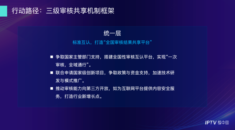 在5月初贵阳的“看中国”专项研讨会上,各省IPTV平台代表、行业专家经过深入研讨,就构建“全国IPTV审核共享机制”达成重要共识。在此,我谨代表全体与会单位,提出《全国IPTV审核共享机制倡议》,并呼吁全行业携手行动,共同迈向安全、高效、共赢的新阶段!