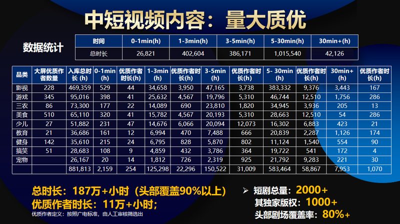 在短视频内容方面,我们目前拥有较为丰富的储备。这些内容主要来源于抖音,涵盖了影视、游戏、生活、美食、少儿、健身等多个领域。需要说明的是,这些内容并非由个人创作,而是来自 PGC(专业内容生产)团队制作的头部创作者内容。同时,这些内容均按照广电标准进行了审核。