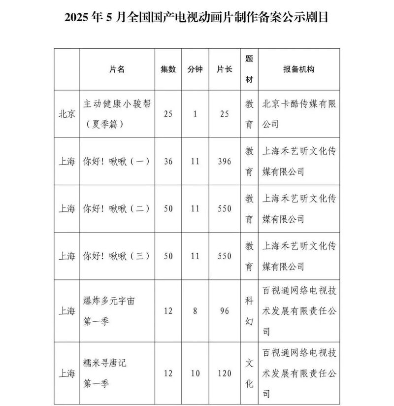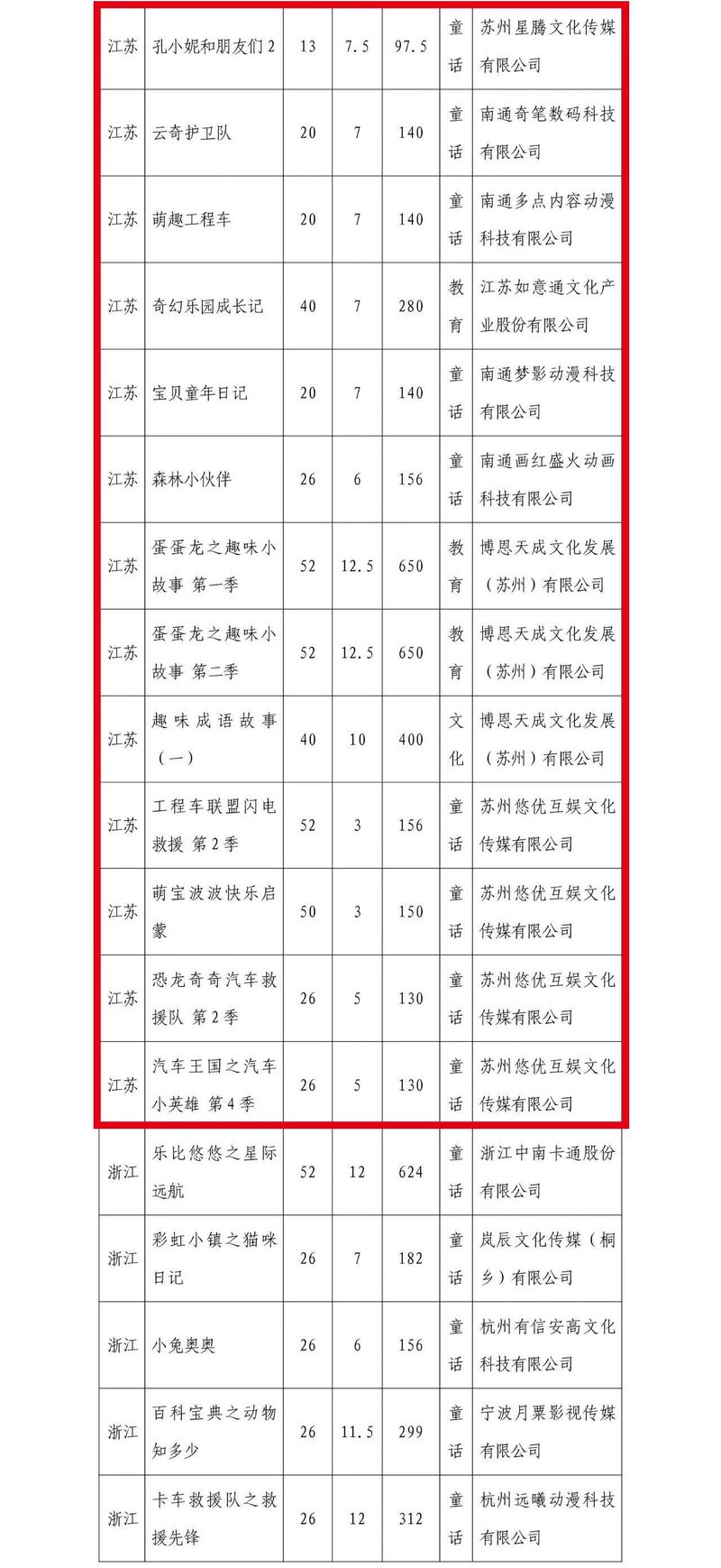 江苏省5月电视动画片制作备案公示数量位居全国第一