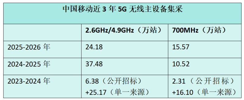 中国移动启动5G无线主设备集采,规模压降至39.75万站,700M占比提升