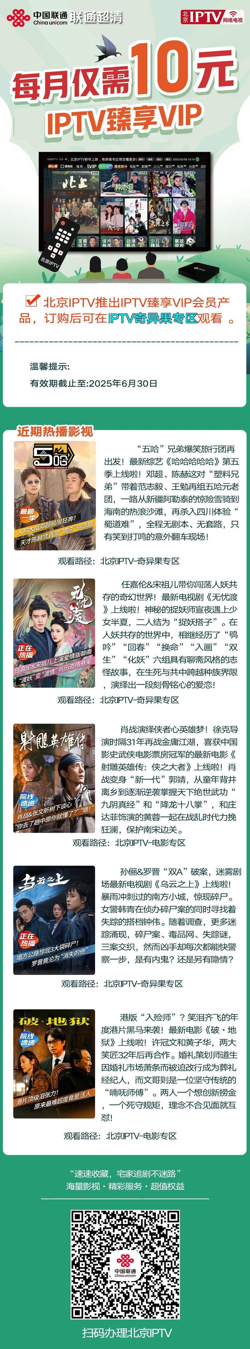 北京IPTV:IPTV臻享VIP 每月仅需10元