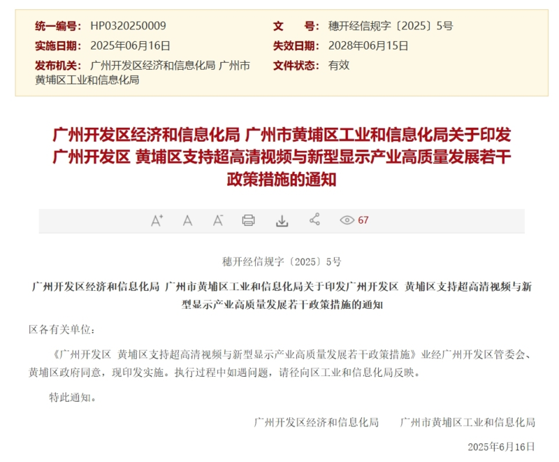6月16日,《广州开发区 黄埔区支持超高清视频与新型显示产业高质量发展若干政策措施》印发实施,加速构建广州市“12218”和黄埔区“12136”现代化产业体系,大力推动超高清视频与新型显示产业迈向价值链高端,助力广州建设“世界显示之都”。