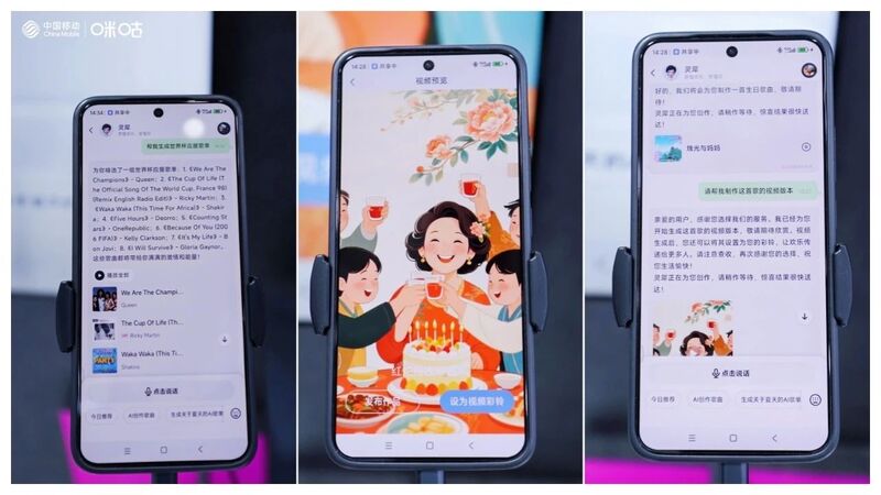 当简单的哼唱在灵犀手中化作精致的MV彩铃,这位音乐伙伴的技术进化之路,正在让它成为用户真正的音乐贴心伙伴。现场,一位年轻女士提及母亲生日需求,灵犀便迅速完成了生日宴的主题策划,并迅速生成庆生风格MV,同步完成情感提取、押韵作词与旋律匹配。“现在连五音不全的我都能输出专业作品了!”她的惊叹引发现场共鸣。随着咪咕音乐APP的焕新,灵犀情感化创作、跨模态生成、工业化输出能力的全面进化,让“影音娱乐-情感陪伴-社交互动”三位一体的智媒生态触手可及。