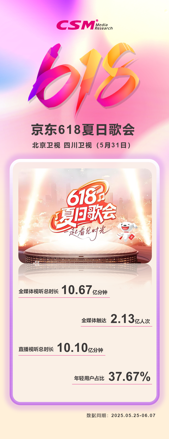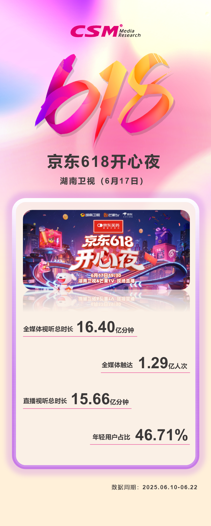 当湖南卫视《京东618开心夜》以16.4亿分钟全媒体视听时长筑起流量堡垒,北京+四川卫视《京东618夏日歌会》用2.13亿人次触达量撕开屏幕边界,舞台欢愉的背后,也藏着年轻人“既要狂欢也要价值”的消费密码。2025年的“618”晚会,早已不是明星炫技的舞台,而是娱乐消费与理性认知的对话场域,是一场由数据推动的消费观念升级,照亮着从“价格战”到“价值战”的转型之路。