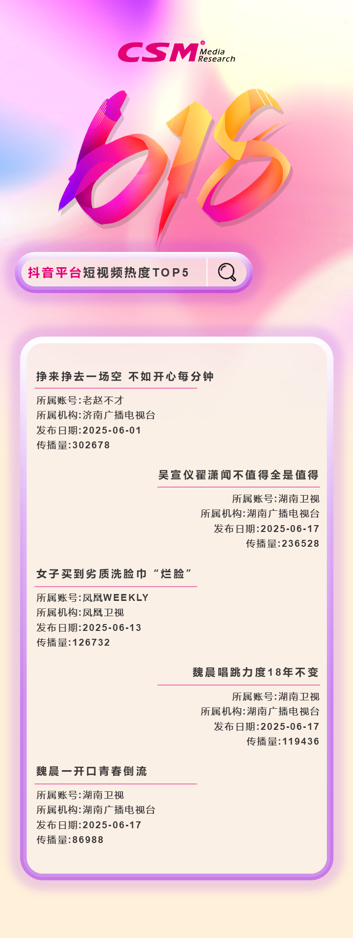 手指划过快手,许昌假发工厂的流水线正以735.7万的高传播揭秘“世界假发之都”的产业密码,新疆喀什小学的新洗衣机又在高流量中转动着公益温暖;切到抖音,前一秒是《不值得》的暧昧氛围和致命吸引力,后一秒“劣质洗脸巾烂脸”的维权视频就弹了出来......当明星舞台与民生纪实在短视频流里无缝切换,你会发现今年618的流量密码:不是套路叫卖,而是“娱乐种草+实用避雷”的双轨叙事。