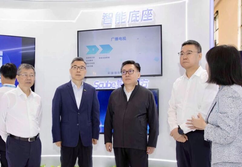 展台分为两大展区。“未来电视技术底座区”展示以超高清技术为核心的发展路径与底层架构,集中展示了AIGC应用集成工具Scube(智媒魔方)、第一财经“星翼”大模型、百视通AIGC“文心雕龙”等众多融合人工智能技术的产品和项目。“未来家庭文娱体验区”则系统呈现了以客厅生态串联的家用生态、移动座舱生态、体育生态等用户场景解决方案,吸引来宾们纷纷驻足。